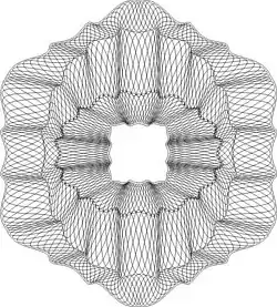 A guilloché is an ornamental pattern formed of two or more curved bands that interlace to repeat a circular design. They are made with a geometric lathe.