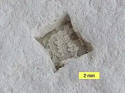 Chemical sedimentary rock forms when mineral constituents in solution become supersaturated and inorganically precipitate.[9] Common chemical sedimentary rocks include oolitic limestone and rocks composed of evaporite minerals, such as halite (rock salt), sylvite, baryte and gypsum.