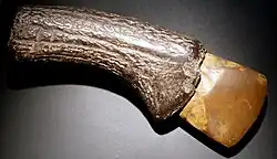 Diagnostic artefacts include transverse arrowheads, antler sleeves and crude, flat-based cylindrical and bucket-shaped pottery decorated with appliqué cordons. The SOM culture had trade links with neighbouring cultures enabling the use of Callaïs and Grand Pressingy flint imported from Brittany and the Loire and later, the use of copper.