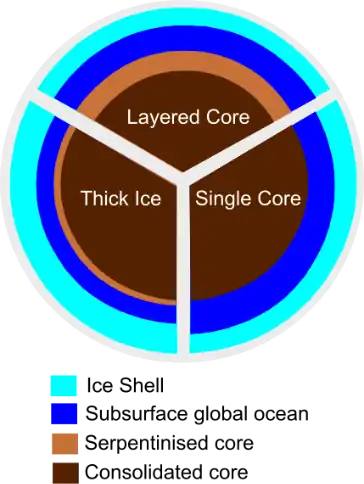 - ^ a b Neumann, Wladimir; Kruse, Antonio (2019-08-30). "Differentiation of Enceladus and Retention of a Porous Core". The Astrophysical Journal. 882 (1): 47. Bibcode:2019ApJ...882...47N. doi:10.3847/1538-4357/ab2fcf. ISSN 1538-4357.