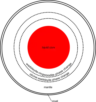 - 520 km discontinuity: a phase transition where wadsleyite becomes ringwoodite.[30]