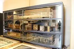 The contents and human remains from the tomb are now divided between Egypt and several museums in Europe. The majority of the funerary goods and furniture, including Sennefer's coffin and items found on his mummy, are in the Louvre in Paris. The Egyptian Museum in Cairo retained the painted scene found atop his coffin and other small pieces such as the fan handle, an ushabti, and cubit rods. Nefertiti's coffin is in the National Museum of Warsaw. The skeletal remains of the occupants are held in Hrdlička’s Museum of Man in Prague, Czech Republic; an amphora and bowl are in the Náprstek Museum.[26]