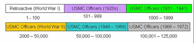 Significant Marine Corps service numbers include:[1]