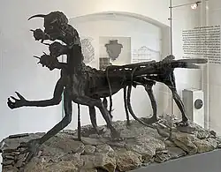 A sculpture of a dragon (German Drache, Latin Draco) with seven heads, four legs, two arms and four tails was likely made for fun by students in Jena during the early 17th century. It is made from animal bones, wire and paper mache. Draco can presently be seen in the city museum in Jena.