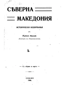 Severna Makedonia (Bulgarian: Сѣверна Македония, 'Northern Macedonia') is a book by Yordan Ivanov, a Bulgarian literary historian, archaeologist and folklorist, and contains historical research for the history of the Kyustendil region from antiquity to the Liberation of Bulgaria (1878). The book was published in Sofia in 1906.[1] It consists of 12 chapters. Chapter 1 is about the ancient Pautalia and its surroundings, Chapter 2 is to medieval Velbuzhd. Chapter 3 examines the development of Christianity in North Macedonia. Chapter 4 traces the emergence, history and fall of the Ottoman Empire in the area. Chapter 5, entitled "Kyustendil Sandjak", provides a geographical and historical overview of the cities located in this area: Dupnitsa, Radomir, Vranje, Kriva Palanka, Kratovo, Shtip, Veles, Radovish, Strumitsa, Kochani and Kumanovo. Chapter 6 deals with agriculture and mining in the district. Chapter 7 researches the history of Kyustendil in the 19th century. Chapters 8 and 9 are dedicated to the Kyustendil Diocese in the 19th century. Chapter 10 contains information on the 19th-century schools in Shtip, Kratovo, Kyustendil, etc. Chapter 11 provides information on the ancient and medieval epigraphic monuments. Chapter 12 contains references to the corresponding preceding pages. The book contains 420 pages, with 3 maps, 21 graphics and 18 black and white photo illustrations, a plan, 5 facsimiles and 65 epigraphic monuments from Latin, Greek, Slavic and Ottoman sources and a pointer of personal and geographical names. It has long been a bibliographic rarity.[2]