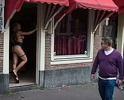 A brothel is a commercial establishment where people may engage in sexual activity with a prostitute,[13] though for legal or cultural reasons they may describe themselves as massage parlors, bars, strip clubs or by some other description. Sex work in a brothel is considered safer than street prostitution.[14]