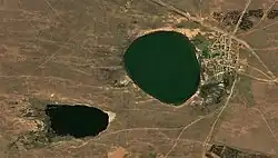 Sharbakty lies by the eastern shore of salt lake Sharbakty, 4 kilometers (2.5 mi) to the northeast of lake Toleuberdy and 6 kilometers (3.7 mi) to the north of soda lake Uyaly. Akkuly town, the district capital lies 36 kilometers (22 mi) to the WNW.[4][5]