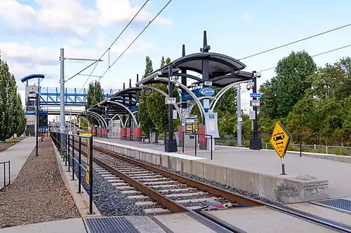 Adjacent to the station is the park and ride, which features a 188-space surface parking lot and two bus bays. Parking is free for patrons for either bus or light rail and is limited to 24 hours.[1]