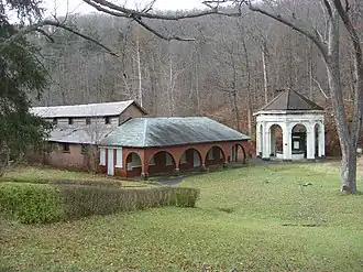 Sharon Springs Historic District is a national historic district located at Sharon Springs in Schoharie County, New York. The district includes 167 contributing buildings and nine contributing structures. It encompasses all of what remains of the historic mineral water spa, including commercial, institutional, and residential properties associated with its resort function during the period, ca. 1825–1941. The focus of the district is a group of mineral springs that together constitute the world-famous spa for which the village was named. Notable buildings include the Magnesia Temple (1863), Chalybeate Temple (1920s), Lower Bath House (ca. 1876), Inhalation Bath House (ca. 1884), Imperial Bath House (1927), Adler Hotel (1928), and Roseboro Hotel (ca. 1905). Also located in the district is the separately listed American Hotel.[2]