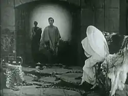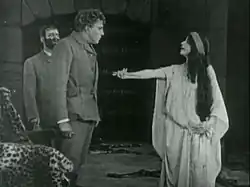 She was the first attempt in film to depict the story in H. Rider Haggard's 1887 novel She: A History of Adventure; an earlier film, The Pillar of Fire (1899) by Georges Méliès, was a short silent trick film in which the central character Ayesha stands amid flames.[6] In the 1911 film only the main scenes from the novel are depicted with intertitles serving to explain the forthcoming scene; one states that "She" strikes down and kills Leo Vincey but the actors do not depict this. The "dialogue" is accompanied by dramatic gesticulation from the actors while the character of Ustane is barely recognisable.[7]