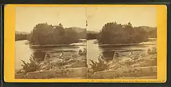 Looking up Androscoggin, from Lead-Mine Bridge, Shelburne, N.H.; stereographic card by John P. Soule