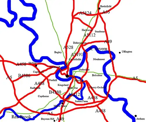- ^ "Cycle routes". Cycle Shrewsbury. Archived from the original on 16 May 2009. Retrieved 25 July 2017.