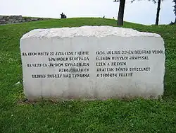Stone in the Kalemegdan Park, in Belgrade, with engraved inscription on the place where Christian forces under command of John Hunyadi won the battle against the Ottomans in 1456.