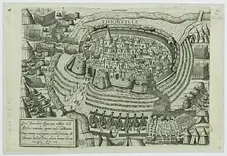 The siege of Thionville was the siege of the town of Thionville during the Italian War of 1551–59. It was held by the Spanish against a French force under Francis, Duke of Guise and others. It lasted from 17 April to 23 June 1558 and resulted in a French victory.
