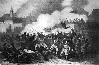In the 18th century, Siemiatycze was among the most developed towns of the region. At that time it belonged to the Sapieha family, which founded the town hall, synagogue and other buildings. Noblewoman Anna Jabłonowska founded a midwifery institute, hospital, monastery, palace with a museum and a new printing house.[2] She also obtained a permission from the kings of Poland for the town to hold two annual fairs.[2] In 1807 Siemiatycze was annexed by the Russian Empire, and during the January Uprising, the Battle of Siemiatycze took place here, after which most of the town was destroyed, together with the Jabłonowski Palace, which has never been rebuilt. Following World War I, Poland regained independence and control of the town.