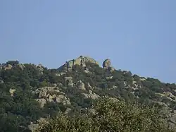 The slopes of this mountain are dotted with large rocks and granite outcrops, and covered with holm oaks, stone pines, oaks (Quercus pyrenaica), cork oaks, and Mediterranean shrubs, among which rockrose and broom stand out.[14]
