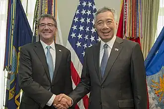 Despite the close relationship between the two countries, on 1 April 2022, Prime Minister Lee Hsien Loong stated that Singapore is not an ally of the U.S., will not conduct military operations on behalf of the U.S., and will not seek direct military support from the U.S.[2] This was reiterated by Lawrence Wong in 2024.[3]