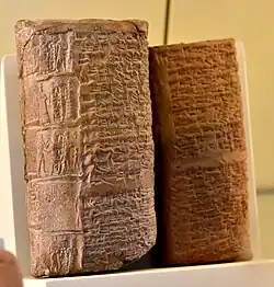 Based on Shamash Temple records Sippar ruler Immerum is known to have been roughly contemporary with the rule of Sumu-la-El. He is suggested to have been ruling Sippar when Babylon took control based on a text sealed with oaths to both Immerum and Sumu-la-El.[10][11] In another text detailing gifts for dignitaries Sumu-abum, first ruler of the First Babylonian Empire received the largest gift with Immerum and Sumu-la-El (2nd ruler of that empire) receiving smaller gifts.[12] Four year names of Immerum are known including "The year (in which) the temple of Inanna Immerum built".[13]
