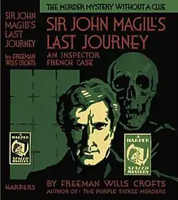 Sir John Magill’s Last Journey is a 1930 detective novel by the Irish writer Freeman Wills Crofts.[1] It is the sixth in his series of novels featuring Inspector French, a prominent figure of the Golden Age of Detective Fiction. Much of the novel takes place in Northern Ireland, particularly around Belfast, where Crofts had spent a great deal of his younger years before moving to England. As with many of his puzzle mysteries its solution revolves around railway timetables as well as the possible distance a boat could cover in a certain time.