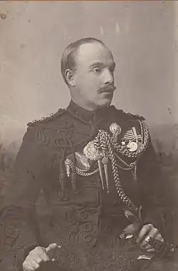 In 1907, he was posted back to the 1st Rifle Brigade and Holywood, Belfast, Ireland. He remained in Ireland for five years. Thom's Official Directory shows him as a Staff Captain, Curragh Camp, Kildare, Ireland in 1910[10] and the 1911 Irish census shows him still in Kildare, living with his wife, son and daughter in Ballyfair (Ballysax, West Kildare), whereas other sources state he was the Deputy Assistant Quartermaster General, 5th Division Irish Cmd between 1909 and 1912.[11] In the spring of 1912 he was posted to the 3rd Battalion Rifle Brigade at Tipperary, but he was not to remain there.