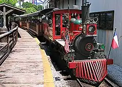 Both locomotives on the Six Flags & Texas Railroad were originally built at the turn of the century for the Enterprise sugar cane plantation in Louisiana.[1] Engine #1, known as the Green Train (due to its color scheme) or the Mary Ann, was built in 1901 by the Cooke Locomotive and Machine Works, which later became part of the American Locomotive Company (ALCO). The smaller engine #2, known as the Red Train or Lydia, was created for the plantation in 1897 by H.K. Porter, Inc.