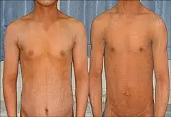 SLS is caused by a mutation in the fatty aldehyde dehydrogenase gene found on chromosome 17.[4] In order for a child to receive SLS both parents must be carriers of the SLS gene. If they are carriers their child has a 1/4 chance of getting the disease. In 1957 Sjögren and Larsson proposed that the Swedes with the disease all descended from a common ancestor 600 years ago. Today only 30–40 persons in Sweden have this disease.[5]