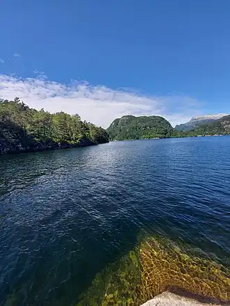 Skogseidvatnet is a lake in Bjørnafjorden Municipality in Vestland county, Norway. The 5.3-square-kilometre (2.0 sq mi) lake lies in the Hålandsdal valley, about 7 kilometres (4.3 mi) east of the village of Eikelandsosen. Water from the river Orraelva and the lake Gjønavatnet flow into the lake, and then it flows out into the lake Henangervatnet before flowing out into the fjord.[1]