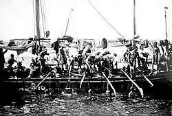 In the 1940s, a third slave trade route was noted, in which Balochis from Balochistan were shipped across the Persian Gulf, many of whom had sold themselves or their children to escape poverty.[4] In 1943, it was reported that Baloch girls were shipped via Oman and the Trucial States to Mecca, where they were popular as concubines (sex slaves), since Caucasian girls were no longer available, and were sold for $350–450.[5]