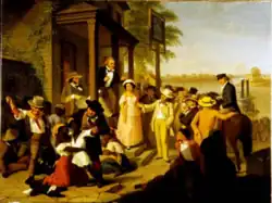 Beginning during the Revolution and in the first two decades of the postwar era, every state in the North abolished slavery. These were the first abolitionist laws in the Atlantic World.[98][99] However, the abolition of slavery did not necessarily mean that existing slaves became free. In some states they were forced to remain with their former owners as indentured servants: free in name only, although they could not be sold and thus families could not be split, and their children were born free. The end of slavery did not come in New York until July 4, 1827, when it was celebrated (on July 5) with a big parade.[100] However, in the 1830 census, the only state with no slaves was Vermont. In the 1840 census, there were still slaves in New Hampshire (1), Rhode Island (5), Connecticut (17), New York (4), Pennsylvania (64), Ohio (3), Indiana (3), Illinois (331), Iowa (16), and Wisconsin (11). There were none in these states in the 1850 census.[101]