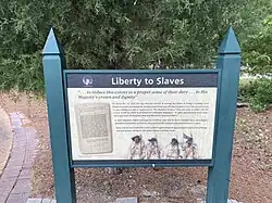 Memorial to Lord Dunmore's Ethiopian Regiment of Black Loyalists who wore clothing inscribed with the words "Liberty to Slaves"