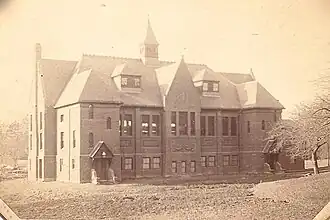 The gymnasium was built in 1890 to a design by William C. Brocklesby of Hartford, Connecticut.[3] It replaced an older wood-frame structure that was part of the original Peabody & Stearns plan for the campus, and was built in 1879.[2] Brocklesby is credited with the design of nine buildings on the Smith campus.[3] It was here that Senda Berenson Abbott, the college's directory of physical education, adapted the then-new game of basketball for women, and where the first formal women's basketball game was played.[3]