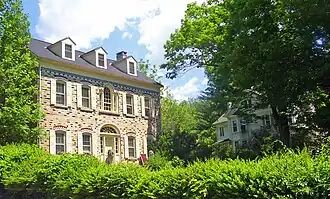 Known also as the Ceramic Brick House. Originally built in 1887 as a Second Empire-style mansion complete with mansard roof, in 1950 the windows and roof were converted to a more standard gable with dormers. It was also refaced in polychrome glazed brick imported from Leeds. This drastic exterior redesign did not cost the house its historic status as its original framing and interior layout remain intact.[1]