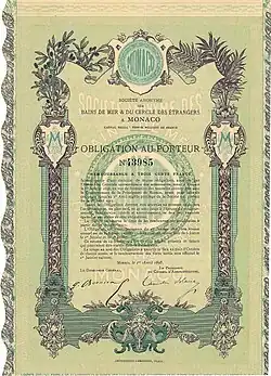 2. ^ "Société Anonyme des Bains de Mer et du Cercle des Etrangers à Monaco". Répertoire du Commerce et de l'Industrie. Retrieved 2022-01-05.