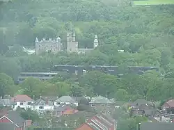 Castle Buildings (in the foreground) lies in the grounds of Stormont Castle (background).