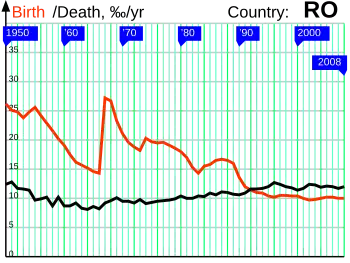 These pro-natalist measures had some degree of success, as a baby boom resulted in the late 1960s, with the generations born in 1967 and 1968 being the largest in the country's history. The natalist policies temporarily increased birth rates for a few years, but this was followed by a later decline due to an increased use of illegal abortion.[48][49] Ceaușescu's policy resulted in the deaths of over 9,000 women due to illegal abortions,[50] large numbers of children put into Romanian orphanages by parents who couldn't cope with raising them, street children in the 1990s (when many orphanages were closed and the children ended up on the streets), and overcrowding in homes and schools.