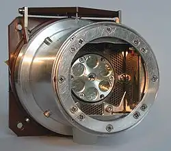 Sensitivity and selectivity depends on a channel; alpha backscattering has high sensitivity for light elements like carbon and oxygen, proton emission is mainly sensitive to sodium, magnesium, aluminium, silicon, sulfur, and X-ray emission is more sensitive to heavier elements sodium to iron and beyond. Combining all three measurements makes APXS sensitive to all elements with the exception of hydrogen that is present at concentration levels above a fraction of one percent.[14] The instrument was designed for the failed Russian Mars-96 mission.[49] The alpha particle and proton detectors were provided by the Chemistry Department of the Max Planck Institute and the X-ray detector was developed by the University of Chicago.[48]