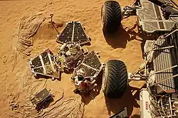 The locomotion system was found to be suitable for the environment of Mars—being very stable, and allowing forward and backward movements with similar ease[11]—and was adopted with appropriate precautions in the subsequent Spirit and Opportunity rover missions.[26]
