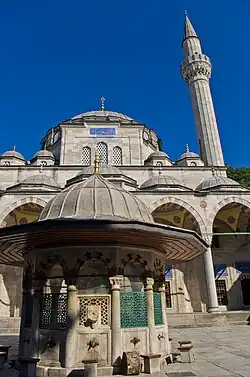 The mosque was designed by Ottoman imperial architect Mimar Sinan for the grand vizier Sokollu Mehmed Pasha and his wife İsmihan Sultan, a daughter of Selim II and one of the granddaughters of Sultan Suleiman the Magnificent.[1] According to the foundation inscription in Turkish above the north entrance to the courtyard, the building was completed in AH 979 (1571/72 CE). Although İsmihan Sultan and her husband jointly endowed the mosque, only Sokollu Mehmed Pasha is listed on the foundation inscription.[2]