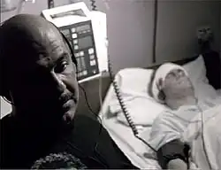 ![]() Crosetti listens to jazz music in the hospital with his injured friend, Officer Thormann. | |