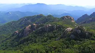 Songnisan (Korean속리산) is a mountain in South Korea. The mountain and nine mountain peaks of the Sobaek Mountain range are part of Songnisan National Park.[1] The park lies on the border between the provinces Chungcheongbuk-do and Gyeongsangbuk-do. It has an area of 274.541 square kilometres (106.001 sq mi) and was designated as Korea's sixth national park in 1970.[1][2]