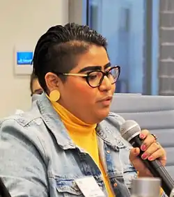 Sonia Guiñansaca (born in Cuenca, Ecuador in 1989) is a migrant poet, cultural organizer and activist whose work aims for culture equality and social justice, focusing on migrant rights, climate change, LGBTQ+ rights, and gender discrimination.[1][2]