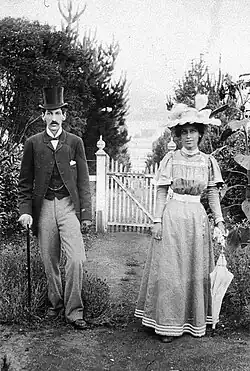 • Sophie Elizabeth Steffanon arriving at a tea party at the Jones' house, Dapto, New South Wales, 1898, by A.C. Cowle, State Library of New South Wales, BCP 05218