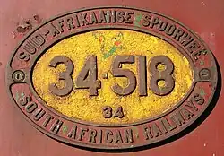 While it is believed that they were for the most part renumbered from Iscor numbers to SAR numbers in sequence with their Iscor numbers, at least one locomotive has been observed as being out of sequence. No. 34-523 bore works plate no. 35265, identifying it as ex Iscor no. 5D. It can be presumed that no. 34-505 carried works plate GE 40402, which would make it ex Iscor no. 23D, but since the works plates have over time disappeared from most of these locomotives, this cannot be confirmed.[1]