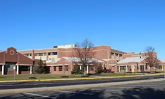 The current 360,000-square-foot (33,000 m2) building was built in 1997 on an 80-acre (32 ha) campus at the corner of Stouts Lane and Ridge Road due to overcrowding issues and paid for as part of a $51 million project (the equal of $99.9 million in 2024).[8] With the opening of the new high school facility, the original building was repurposed for grades 6-8 and is now Crossroads South Middle School.[9] The annex which is connected by a two-level indoor bridge on levels 2 and 3 was built in 2003–04, on the side of Stouts Lane.