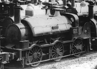 ![]() GWR 2151 Argo at Swindon in 1892 awaiting dismantling following the end of the Great Western Railway's broad gauge services. | |||||||||||||||||||||