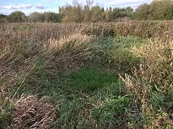 Most of the moated earthworks were filled in during the period when the site was used as a sewage farm.[3] The site is formed of two concentric moats, in the middle of which is a square platform where the manor house once stood.[3] The site is now heavily overgrown, though it can be made out on old aerial photographs.[3]