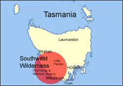 The South West Wilderness of Tasmania, Australia is a remote and inaccessible region of South West Tasmania containing unspoilt scenery, rugged peaks, wild rivers, unique flora and fauna, and a long and rugged coastline. Parts of the wilderness are more than 50 km from the nearest road, so the only access to the area is by foot, air or sea.