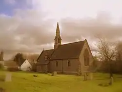 The current Church of England parish church of Saint Lawrence was designed by the Gothic Revival architect R.C. Hussey and built in 1860.[4] It is in a Decorated Gothic style[4] and incorporates some elements of the previous Norman church. The font is 13th century,[4] and there is a 14th-century tomb recess in the north wall of the chancel.[4] Over the east window, on the outside is a statue of Saint Lawrence.[4]