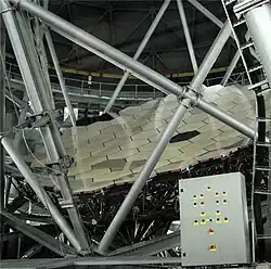 The Southern African Large Telescope (SALT) is a 9.2-metre optical telescope designed mainly for spectroscopy. It consists of 91 hexagonal mirror segments each with a 1-metre inscribed diameter, resulting in a total hexagonal mirror of 11.1 by 9.8 m.[2] However, its effective aperture is only 9.2 m. It is located close to the town of Sutherland in the semi-desert region of the Karoo, South Africa. It is a facility of the South African Astronomical Observatory, the national optical observatory of South Africa.