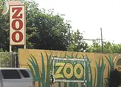 During 1996, Dingle lost the zoo's 1.5-acre (0.61 ha) parking lot to foreclosure. The zoo was situated on four parcels – including the parking lot – that totaled approximately four acres.[21] Without having to make further mortgage payments for the parking lot parcel, Dingle hoped to pay off the city loan and possibly have money left to expand the zoo.[23] The city lawsuit was settled in January 1998, when Dingle agreed to turn over his lease on the state park acreage in exchange for the retirement of his loan.[30][31][32][33] Improvements at the zoo were underway in 1998.[33] In 2009, the San Diego Zoo donated $15,000 to the zoo to renovate an animal habitat.[34]